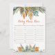 These orange, green, and brown floral Baby Name Race cards are a fun addition to your Baby Shower!