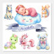 Transform your little one’s room into a dreamy wonderland with this adorable watercolor wallpaper, featuring a sleeping baby nestled on a smiling cloud and surrounded by soft pastel woodland animals. From gentle turtles and playful raccoons to sweet mice and teddy bears, every detail is designed to bring warmth, comfort, and joy to your nursery space.