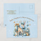 Baby Nephew's First Christmas cute card on a shiny metal pale blue background, snowflakes falling and a little fawn surrounded by Christmas presents. Back side has a cute verse appropriate for the occasion.