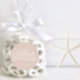 A girl baby shower "baby on board" theme featuring white line art with sun, and waves. White text. Background is pink.