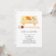 This cute and kawaii "baby on board" gender-neutral baby shower invitation features sushi and rolls on a wood board with a pair chopsticks in watercolor on a white background. The reverse side features a white background with grey wave patterns. Change the background colour on both front and the back and personalise it for your needs.