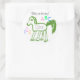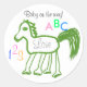 Baby Shower Round Stickers with the wording Baby on the Way, ABC, 123. Cute whimsical green horse with the word Love written in the middle of horses body. Original Artwork and Designs © TamiraZDesigns.