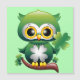 Cute Little St Patrick's Day Owl Cartoon Character standing on a branch and holding a Shamrock Clover. Original Vector Art Copyright BluedarkArt TheChameleonArt