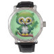 Cute Little St Patrick's Day Owl Cartoon Character standing on a branch and holding a Shamrock Clover. Original Vector Art Copyright BluedarkArt TheChameleonArt