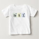 Spells out "baby" using elements from the periodic table. Background is a very pale blue, suitable for boys or girls.