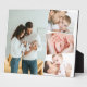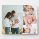 Create your own baby photo plaque with 4 of your favourite pictures. The photo template is set up to create a photo collage with one main photo, slightly overlaid with the remaining three photos in a vertical zigzag. Your pictures are displayed in portrait and landscape format with white frames.