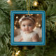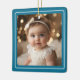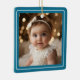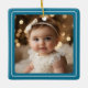 Baby Photo Teal Modern Christmas White Script Ceramic Ornament
