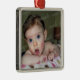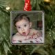 Silver baby picture frame ornament. Add a special to these square, silver photo frames attached to a silky red ribbon. Makes a nice photo gift for family.