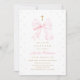 Coquette baptism invitation that features an elegant pink bow and a gold cross and white pearls