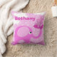 Digital art of a baby elephant holding flowers in it's trunk in cute patchwork style with a dotty pink sky and fluffy stitched clouds. Cute cushions ideal to customise with a name for a Child's bedroom.