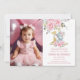 Baby Pink Floral Elephant One 1st Birthday Photo Invitation