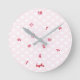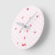 Custom, personalised, fun jumbled numbers baby pink hearts pattern acrylic round wall clock for your room, home, kids corner. Its hours all appear to be jumbled, crazily placed, but amazingly it works! Simply type in your kids name / your name / family name, to customise. Makes a great custom, personalised gift for birthday, valentine's day, wedding, anniversary, holidays, christmas, and more.