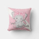 Children's pillow for the nursery. Cute cartoon baby elephant on a pink white polka dot background. An ideal gift for a little girl ready to personalise her baby’s birth information.