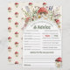 Mushroom Baby Shower Baby Predictions and Advice cards featuring a whimsical watercolor wreath of red toadstool mushrooms, wildflowers and soft greenery. Cute Baby Shower Games and interactive baby predictions cards for guests for a forest mushrooms themed baby shower, perfect for a Whimsical, cute, Earthy Baby celebration. Ideal for guests to fill in predictions about the baby’s name, date and time of birth, weight, length, hair and eye color, resemblance to mom or dad, plus heartfelt advice for the new parents—adding a fun, memorable activity that ties perfectly into your woodland/boho rustic baby shower setup.