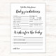Baby shower activity - baby predictions and wishes for the baby. This baby shower activity features black and white gender neutral and minimalist design with modern calligraphy script. Easily add your personalisation or edit in design tool for further customisation.