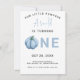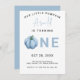 Cute birthday invitation card featuring watercolor illustration of blue PUMPKIN. The text says "OUR LITTLE PUMPKIN".