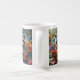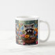 A ceramic mug featuring an illustration of a baby racoon in a basket of flowers