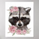 Baby Racoon Rose Animal Poster | Wall Print