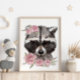 Baby Racoon Rose Animal Poster | Wall Print - Your child's love for animals will brighten up our adorable Baby Racoon Nursery Poster is assured to charm any nursery or bedroom.