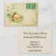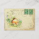 A bit of ephemera with my painting of a baby robin. The little baby bird is sitting in the violets. The background is an antique post card and a bit of script writing.