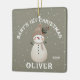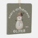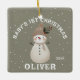 Neutral Baby’s 1st Christmas Snowman Keepsake Photo Ceramic Ornament. Celebrate your little one’s first holiday season with this adorable Baby’s 1st Christmas Snowman Ornament! Designed in warm neutral tones, it features a cute vintage-style snowman - perfect for both boys and girls. Personalize it with your baby’s name to create a timeless keepsake that will be cherished for years. A beautiful, gender-neutral addition to any holiday tree and a thoughtful gift for new parents or grandparents!