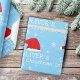 Baby`s First Christmas Blue Santa Hat Snowflake Wrapping Paper. Cute baby first Christmas design with a Santa hat, snowflakes and a baby name in a white script - personalise with your baby`s name.