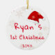 Baby`s First Christmas Santa Hat Snowflakes Photo Ceramic Ornament