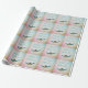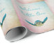 Baby wrapping paper with little sea turtle design. Customise text in blue script and it will be printed in a pattern on high quality, gift wrap on a roll. Colours are pink and blue with tan and a turtle swimming right at you in each repeating square.