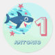 One year / any age boy birthday ocean blue baby shark gift wrap or seal funny cute favour sticker featuring a little shark swimming underwater with fish and red stars. ++++++++++++ Easy to personalise with your kid's name and age.