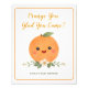A sweet watercolor Little Cutie baby shower drink or gift station sign with a smiling orange, white blossoms, sage vines, and a soft background. The sign reads "Orange You Glad You Came?" Perfect for citrus baby showers.