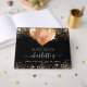 A stylish black background with faux gold glitter dust. Decorated with golden balloons. Personalise and add a name, text and date.