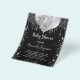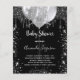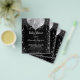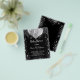A stylish black background. Decorated with faux silver glitter and balloons. Personalise and add a name, party details. The name is written with a hand lettered style script