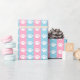 This gift wrap displays a pattern of white paw prints on a blue and pink background. This is a great item for paw print themed, dog themed, cat themed, or animal themed baby showers.