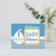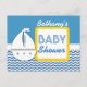 BABY SHOWER Blue Chevrons and Sailboat for Boy A01 Announcement Postcard