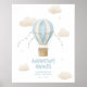 Baby shower blue hot air balloon adventure awaits invitation design. Ideal gender neutral or baby boy party welcome poster design. Perfect coordinating baby shower design collection.