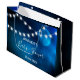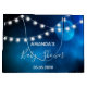A gift bag for a baby shower. A romantic dark and blue evening and night with a full moon and shiny light strings. White letters and templates for the mum to be's name, and a date. The text: Baby Shower is written with a modern white hand lettered style script. Gender neutral, for both a baby boy and baby girl.