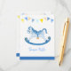 Hand painted blue rocking hobby horse with stars and graphic bunting, baby shower diaper raffle cards. Perfect for you to request diapers or nappies so your guest can have a chance to win prizes at your baby shower. Original whimsical baby boy blue rocking horse watercolor painting and graphic design by Sarah Trett for www.mylittleeden.com on zazzle.