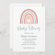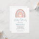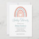 A lovely baby shower invitation featuring a boho style rainbow element, all text can be fully customised for your family celebration.