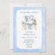 Adorable baby shower invitation for a baby boy featuring a teddy bear theme with hanging baby clothes on a clothesline. Soft blue tones, cute baby essentials, and sweet teddy bear accents make this invite perfect for welcoming a little bundle of joy.