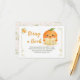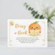 A sweet watercolor Little Cutie baby shower design for a bring a book instead of a card insert with a smiling orange reading a book, white blossoms, sage vines, and a soft background. Perfect for citrus baby showers.