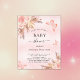 For a modern boho style baby shower. A blush pink rustic background. Decorated with rose gold and pink florals, roses, pampas grass and butterflies. Personalise and add a name and party details.