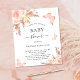 For a modern boho style baby shower. A white background on the front. Decorated with rose gold and pink florals, roses, pampas grass and butterflies. Personalise and add a name and party details.