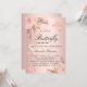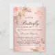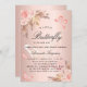 For a modern boho style baby shower. A rose gold gradient background. Decorated with rose gold and pink florals, roses, pampas grass and butterflies. Personalise and add a name and party details.
