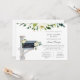 A baby shower by mail invitation is perfect for those that live a long distance from loved ones, but still want to shower the mummy to be with love and gifts to help prepare for baby. This long distance shower by mail invitation features a hand painted mailbox filled with white flowers and greenery and the request poem "Gathering loved ones at this time is hard