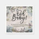 Elegant Vintage Baby Shower Cocktail Paper Napkins Templates - Elegant Script, Vintage Watercolor Botanical Floral and String Lights on Rustic Wood Background.