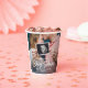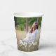 Add an elegant touch to baby shower decorations with chic modern custom photo paper cups. The picture and all wording on this template are simple to personalise. The gender neutral design is suitable for either a new baby boy or girl, and can also be customised for a couples co-ed baby shower. (IMAGE PLACEMENT TIP: An easy way to position a photo exactly how you want is to crop it before uploading to the Zazzle website.) The minimal black and white overlay design features trendy bold brushed script calligraphy, vintage art deco typography and one picture of your choice, such as a mum-to-be pregnancy photo or new parents maternity pic. These stylish customised cups add a unique finishing touch to baby shower celebration decor. Congratulations to the mother to be!