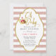 Baby Shower Crown Gold & Pink Modern Stripes Invitation