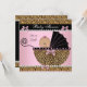 Cute Baby Shower Baby Girl Pink Black Leopard Pram Pearl Lace Pearl Lace Bow Ribbon invitation,