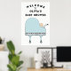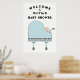 Adorable baby shower welcome decoration featuring baby boy in a blue baby grand piano shaped like a stroller. Edit text to add mother-to-be's name.