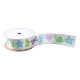 This cute ribbon is appropriate for baby showers, and baby and toddler parties and gifts. Baby dinosaurs, hearts, butterflies and flowers in tones of green, lavender, and blue make an adorable pattern.. This ribbon matches the Oh Baby Dinosaur gift wrap and bags in our store.